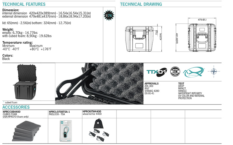 Significa que las maletas HPRC puede soportar impactos, caídas, presiones, humedad, polvo, arena y ácidos desde -40 ° C to️ hasta + 80 ° C