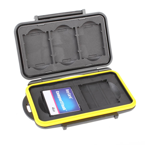 Este estuche robusto e impermeable está diseñado para transportar y proteger de forma segura hasta 3 tarjetas XQD y 2 tarjetas CF.