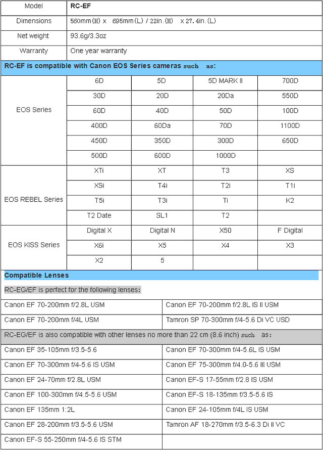 Funda protectora de lluvia para Canon EOS, objetivos de 22mm