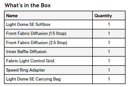 Con un peso aproximado de 1 kg, el Light Dome SE es uno de los modificadores de iluminación más portátiles de todos los tiempos. Cada Light Dome SE también se envía con su propia bolsa de transporte para garantizar que, sin importar a dónde lo lleve la sesión, su equipo llegará sano y salvo, y listo para usar.