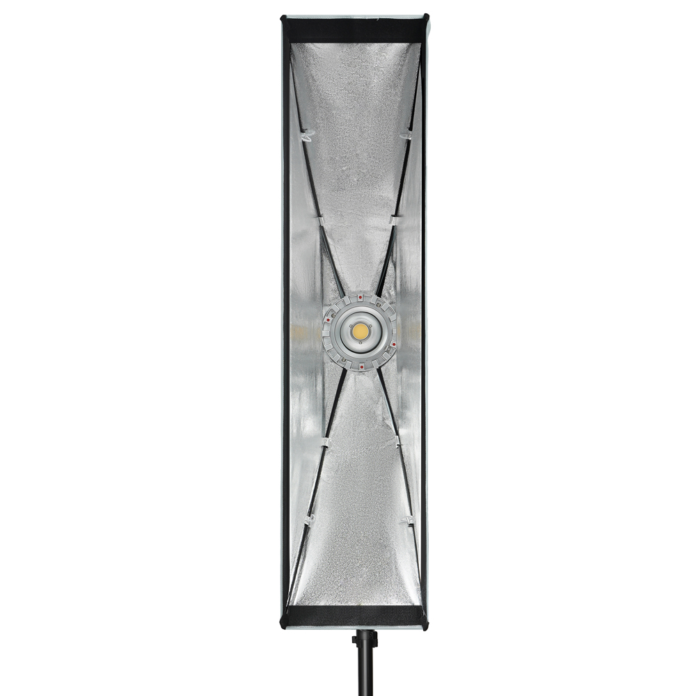 La Light Box 30x120 es una caja de luz rectangular Bowens Mount con una apertura frontal de 60x90cm. Su área de superficie y su factor de forma rectangular lo hacen ideal para transformar luces LED Bowens Mount de fuente puntual en luces simples y efectivas para retratos y fotografía de productos, incluidas luces como las series Aputure LS 120d, LS 300 y LS 600. así como la serie amaran COB 60/100/200.