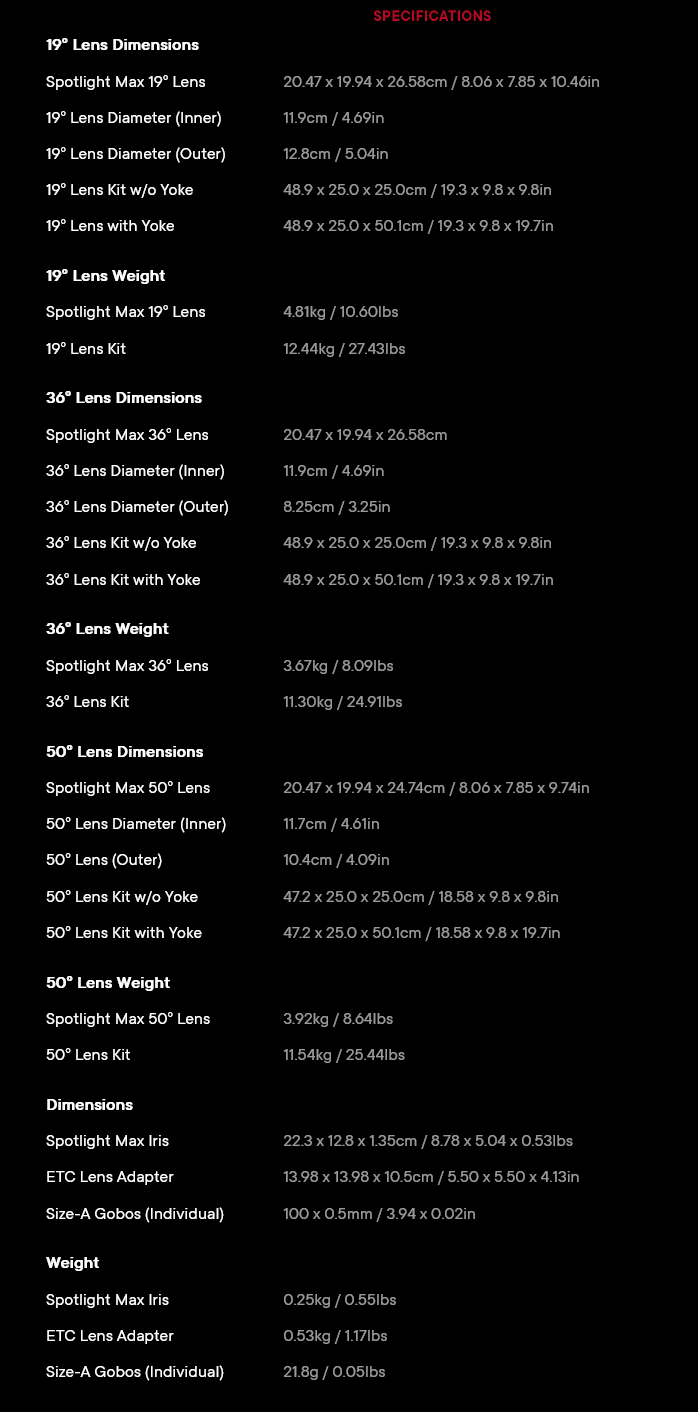 Experimenta toda la potencia de proyección de los motores de luz de 600W o más. El Spotlight Max está optimizado para accesorios LED de montura Bowens de punto fuente de alta potencia. Al adaptar accesorios como el LS 600d y LS 1200d Pro a luces de proyección, los usuarios pueden aprovechar niveles de salida mucho más altos en comparación con los mismos accesorios emparejados con el soporte original de Spotlight, gracias a la mejora de la óptica.