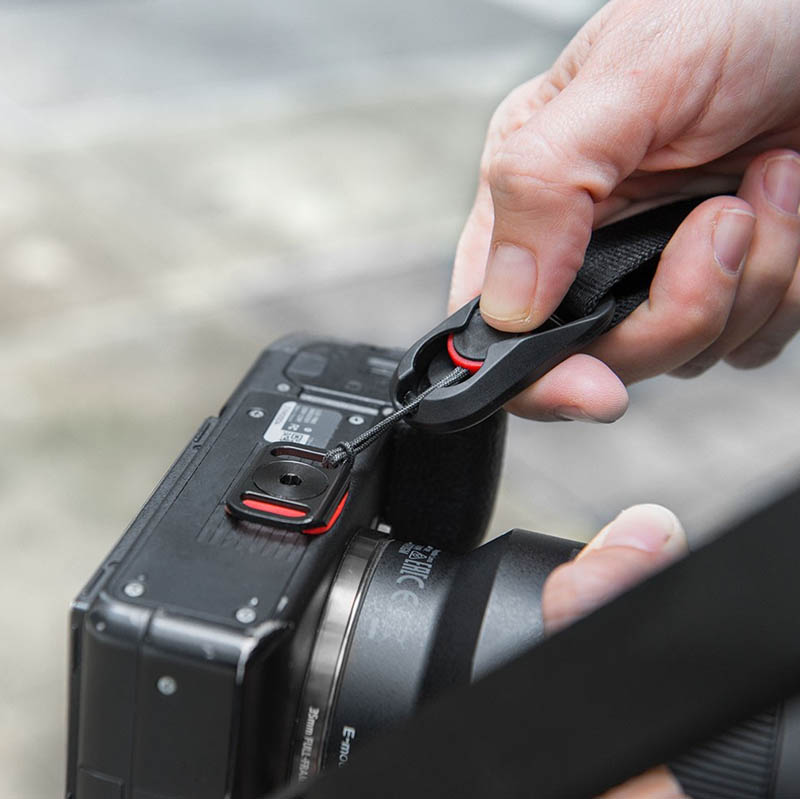 La nueva versión de la correa Leash ofrece gran funcionalidad y una adaptabilidad sin fin en un paquete ultra portátil. Configurable como una correa de hombro, correa de cuello, correa de seguridad, y mucho más. Longitud facilmente adjustable gracias a los cierres en aluminio, diseñados para operar con un sólo dedo. Se conecta y se desconecta rápidamente usando el sistema de micro anclaje único (Anchor Links) y se guarda fácilmente en el bolsillo o bolsa.