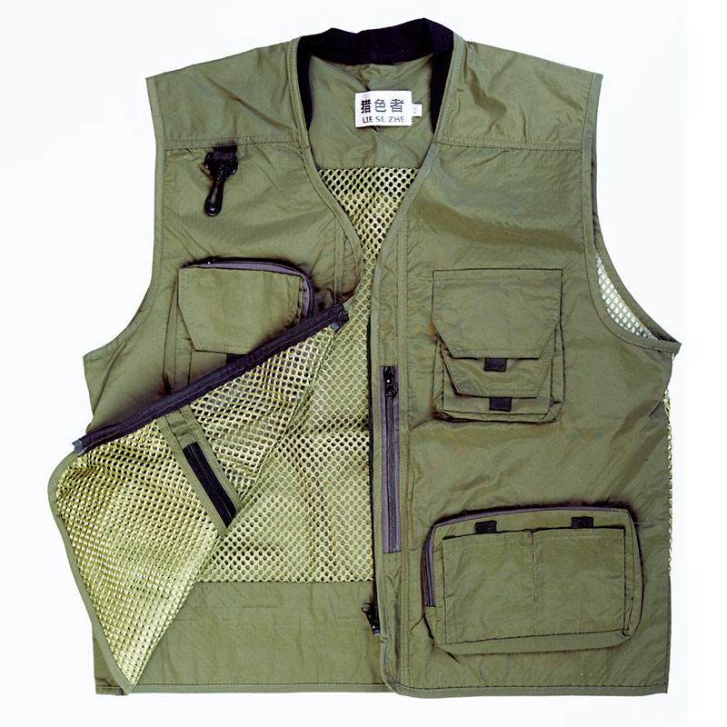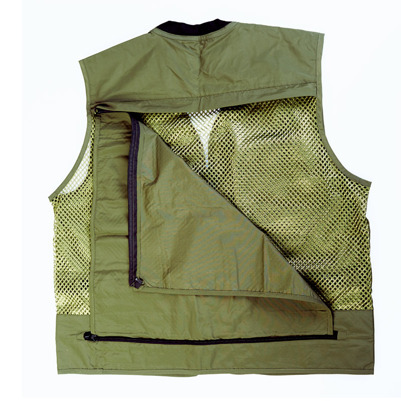 Chaleco fabricado en Taslon resistente al agua. Con doce blosillos en la parte frontal y dos en la interior. Lateral abierto para una mejor ventilació, la parte posterior se puede quitar gracias a una cremallera. Una parte de los bolsillos son con cierre en cremallera, las otras funcionan con velcro.