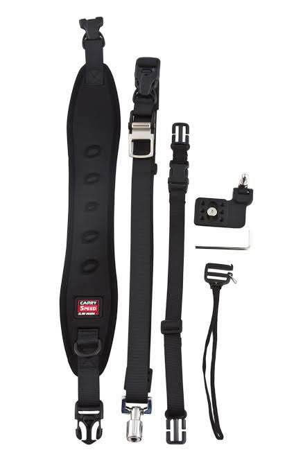 La correa Carry Speed MK III SLIM posee una empuñadura no deslizante, y más delgada, hombro desmontable, almohadilla de neopreno (material elástico que absorbe el peso de la cámara). El FS tiene un ajuste rápido de metal al frente y 3 botones con hebilla de presión. La correa también viene con una placa F2 de placa de montaje orientable.