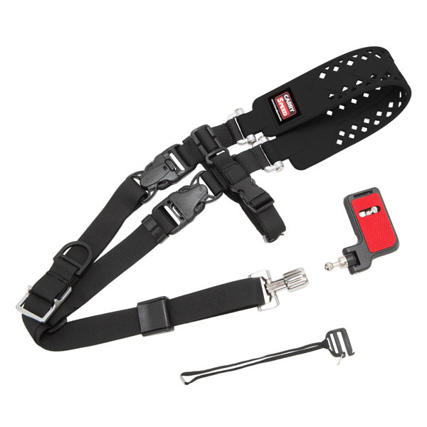 La Nueva correa CarrySpeed Extreme Prime Series creada por fotógrafos para fotógrafos, especialmente para trabajar en cualquier condición meteorológica . Cuenta con una almohadilla para el hombro ultra cómoda y resistente a la intemperie, de goma. La ventaja de este diseño sobre otras es que no hay gancho de mosquetón que puede golpear el cuerpo de la cámara y causar daños. El peso se distribuye uniformemente alrededor de su cuerpo.