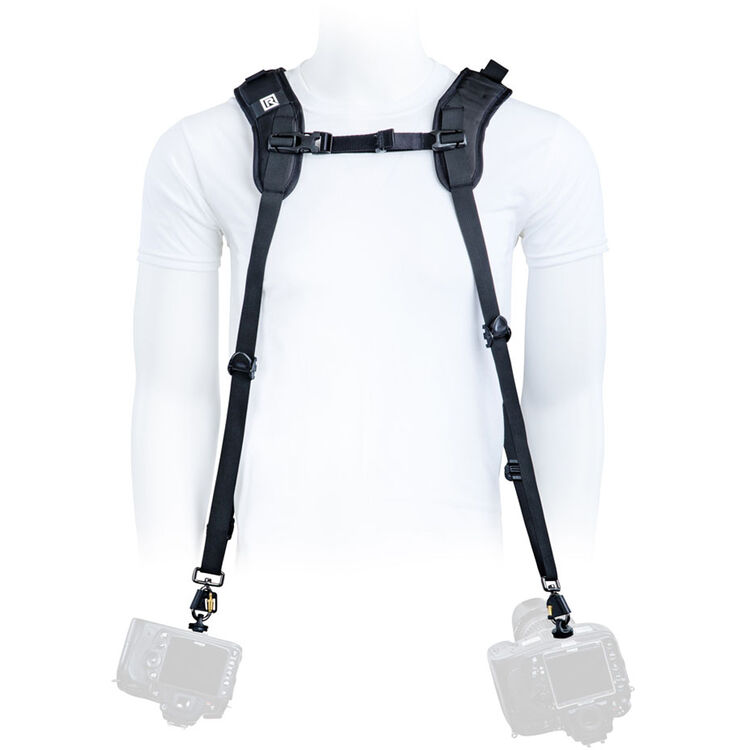 La correa para cámara BlackRapid Double X ofrece máxima flexibilidad para profesionales: dos cámaras perfectamente equilibradas con una hombrera extragrande para mayor comodidad. Ideal para bodas, deportes y eventos: ambas cámaras están listas para usar en un instante.
