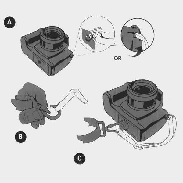 BlackRapid Camera Safety TetheR sirve como protección en caso de que falle una tapa u otro conector de la cámara. El TetheR también se puede usar con el BlackRapid ConnectR. Para mayor resistencia y funcionalidad, el TetheR está fabricado con un tejido de nailon 100%, tiene 10 mm de ancho e incluye un llavero triangular.