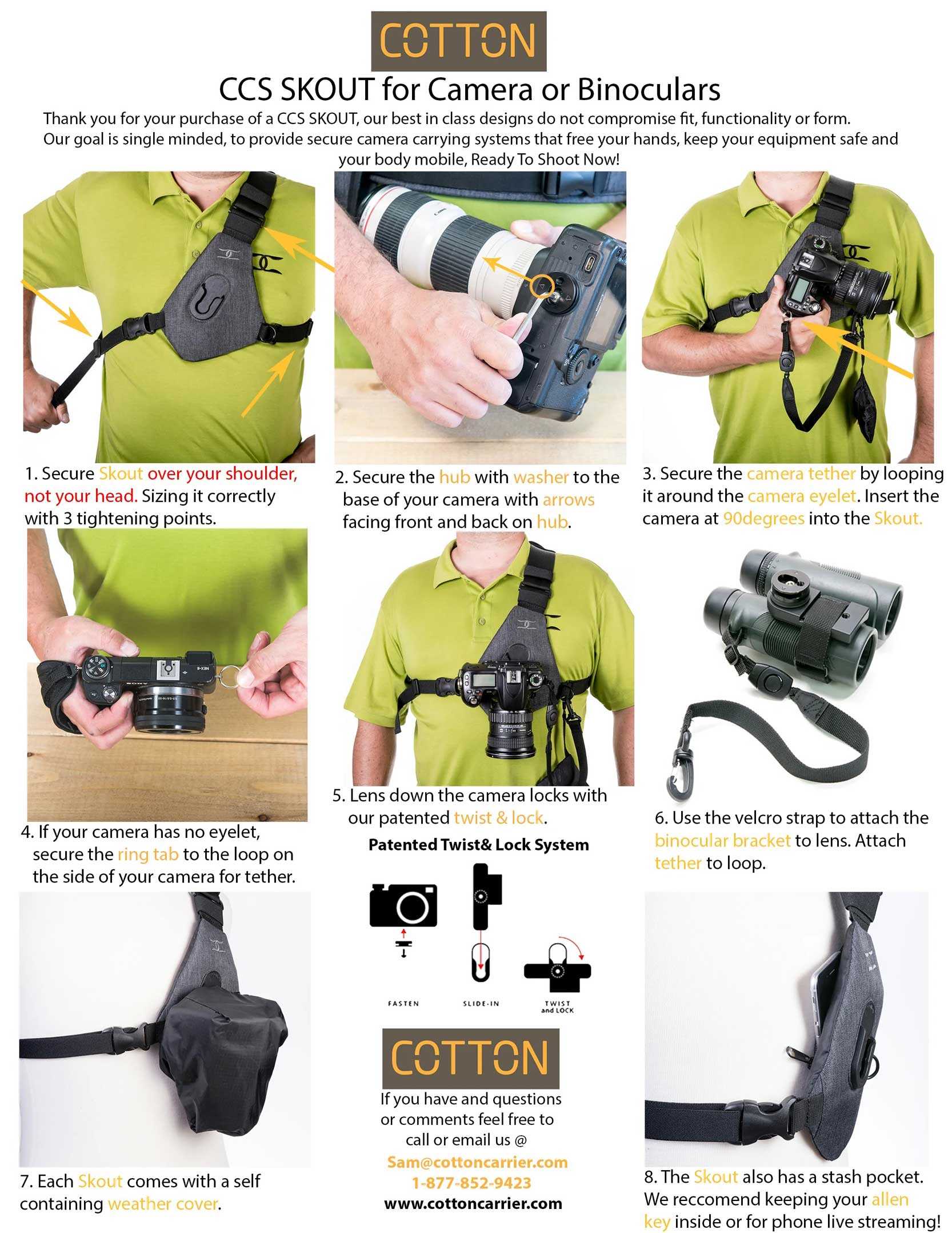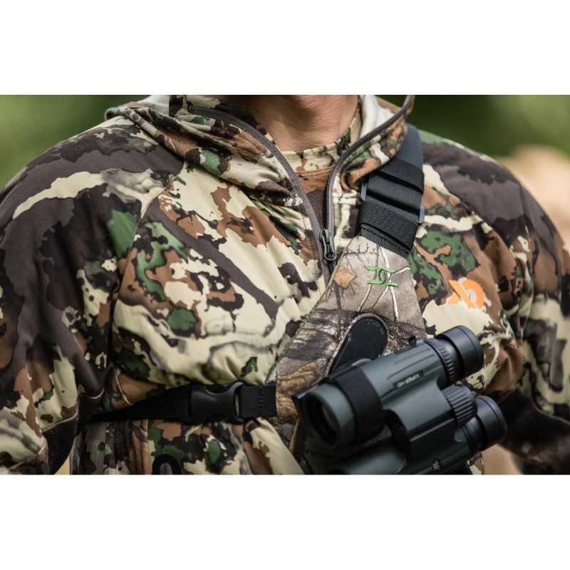 Tenga sus binoculares a punto con el arnés SKOUT tipo Sling para binoculares de Cotton Carrier. Cómodo de llevar y fácil de usar, el arnes se cruza por encima de su hombro y se ajusta a su cuerpo, en lugar de deslizarse sobre su cabeza. El arnés cuenta con un pequeño bolsillo con cremallera, un anclaje de liberación rápida para una protección extra y también incluye una funda para lluvia.