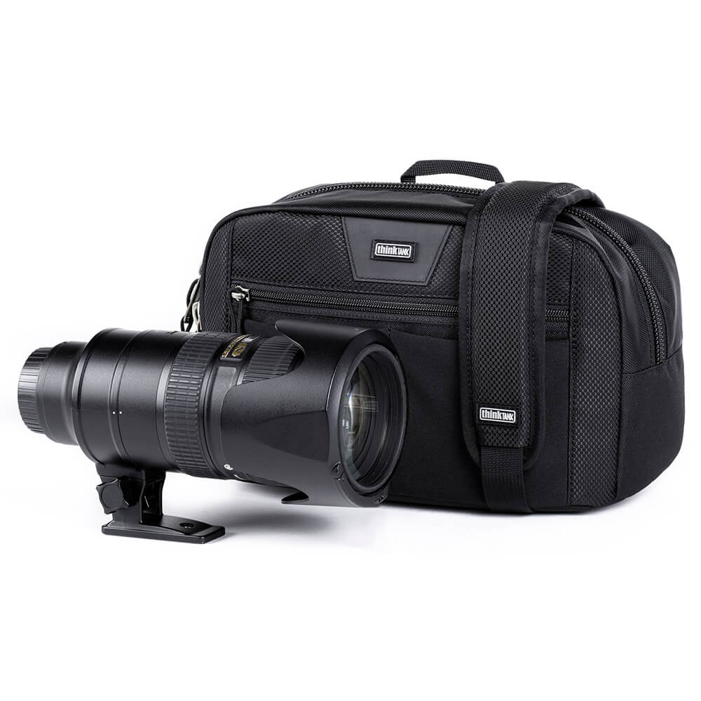 Hubba Hubba Hiney es un bolso que se adjusta a varios objetivos o a un 70-200 tumbado, pensado para usar con el sistema de cinturon.