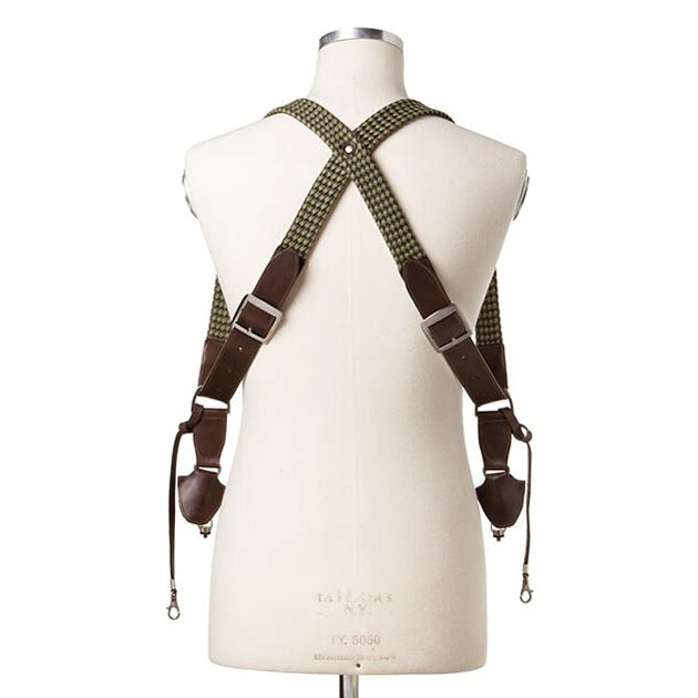 Doble correa en piel para transportar hasta tres cámaras fotográficas.