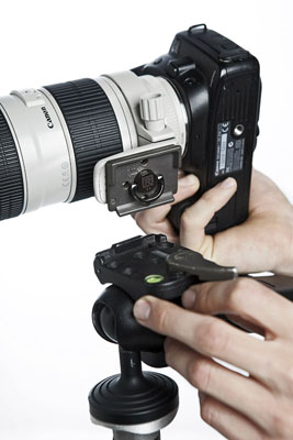 Tuerca especial para colocarla en las zapatas de los trípodes. simplemente solo tiene que soltar el mosquetón del engache y puede colocar la cámara en el tripode.