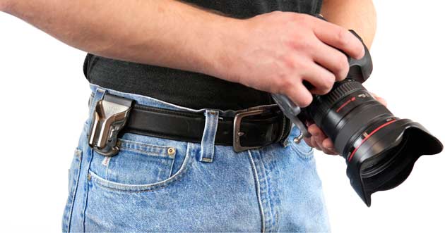 Conjunto de enganche y zapata para colgar la cámara del cinturón