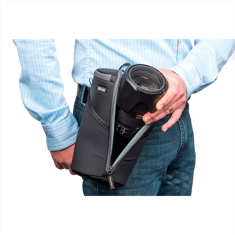 Funda para lentes con apertura dual que permiten acceso rápido al equipo gracias al acceso facilitado. Se puede transportar en una bolsa o enganchado en un cinturón. Los dos bolsillos elásticos externos proporcionan espacio para una tapa de lente o un paño de limpieza. Protectores de cremallera suaves e interior acolchado para proteger el equipo. Correa de hombro incluida.
