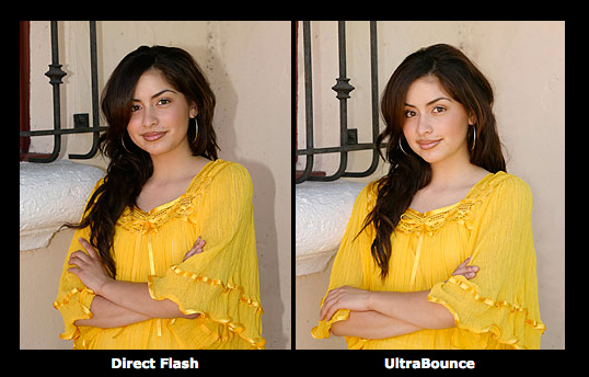 El Ultrabounce distribuye la luz en aproximadamente 180 ° para que pueda rebotar en las paredes y techos para iluminar uniformemente una escena. La pantalla del sensor opaca impide que la luz afecte el sensor automático en la mayorÃa de los flashes.