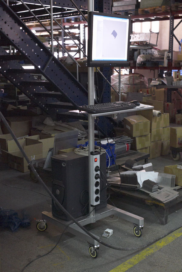 Modelo de columna nº10 adaptado para monitor y ordenador. Este modelo incluye un brazo nº1, un brazo modificado para teclado y un soporte para ordenador. La base con ruedas soporta 200 Kg*. *Según el tipo de pies utilizados