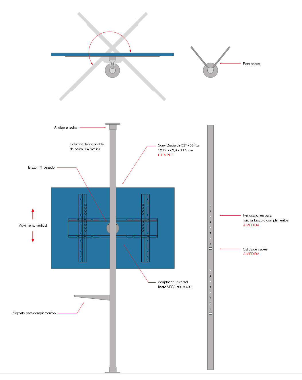 Anclaje de inox para columnas de 63 mm