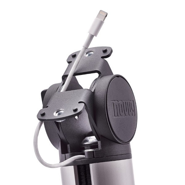 Columna de acero anodizado con anclaje para plataformas Retail System, giratoria e inclinable, capacidad 10 kg, 2 canales cubiertos con cepillo para cableado, altura 100mm con fijación a mesa 2 en 1.