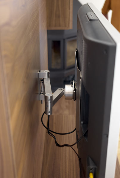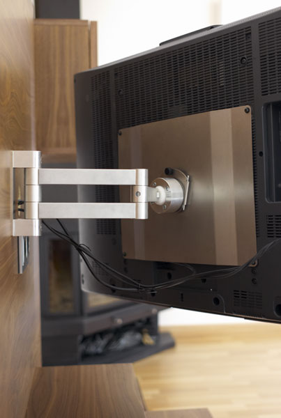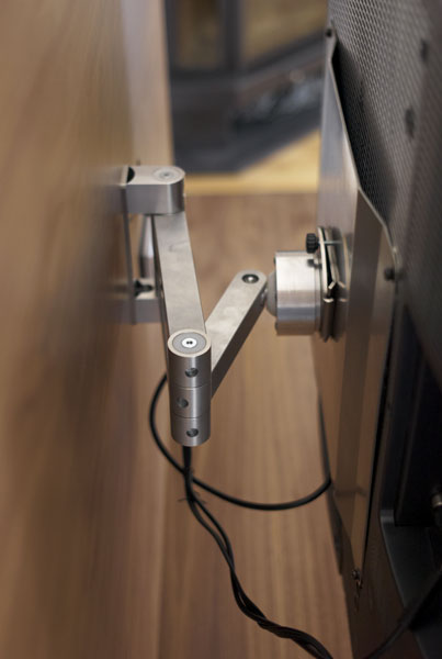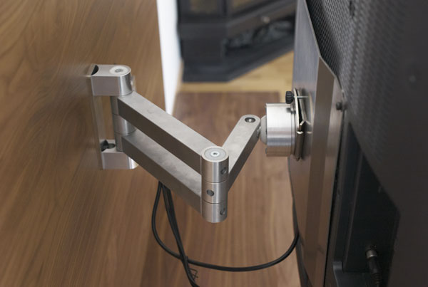 Brazo articulado nº5 con cambio rápido de acero inoxidable, en televisor de 40" con adaptador especial para Sony Bravia