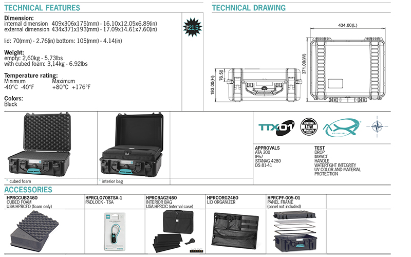 Significa que las maletas HPRC puede soportar impactos, caídas, presiones, humedad, polvo, arena y ácidos desde -40 ° C to️ hasta + 80 ° C