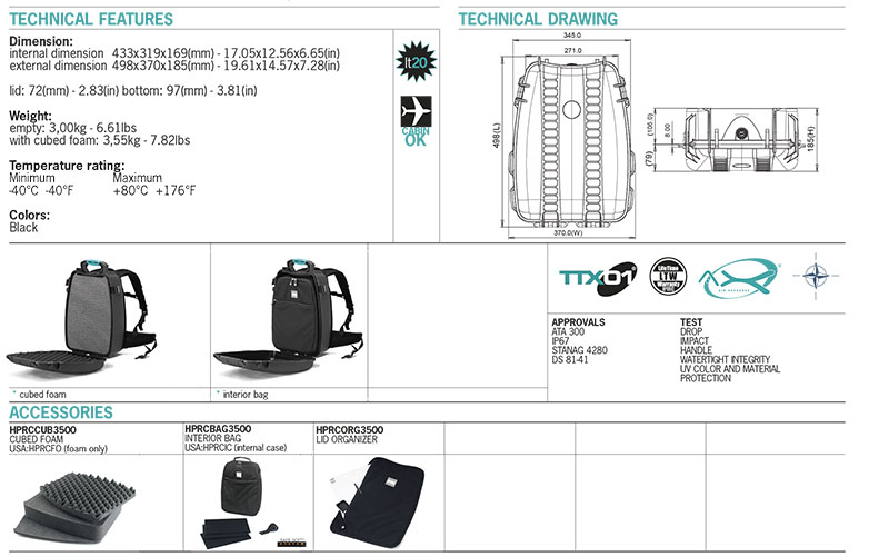 La mochila HPRC3500 es una mochila con una capacidad de 20 litros perfecta para transportar equipos y accesorios de manera segura en la espalda, sin comprometer el peso ni la resistencia. Ligera, estanca e irrompible, esta maleta está diseñada para soportar las condiciones más exigentes, asegurando que tu equipo llegue a su destino en perfectas condiciones.
