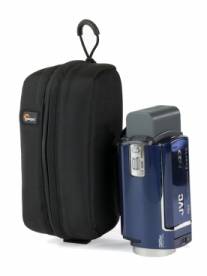 Estuche fabricado para videocámaras compactas de alta definición, incluso con un baterÃa montada.