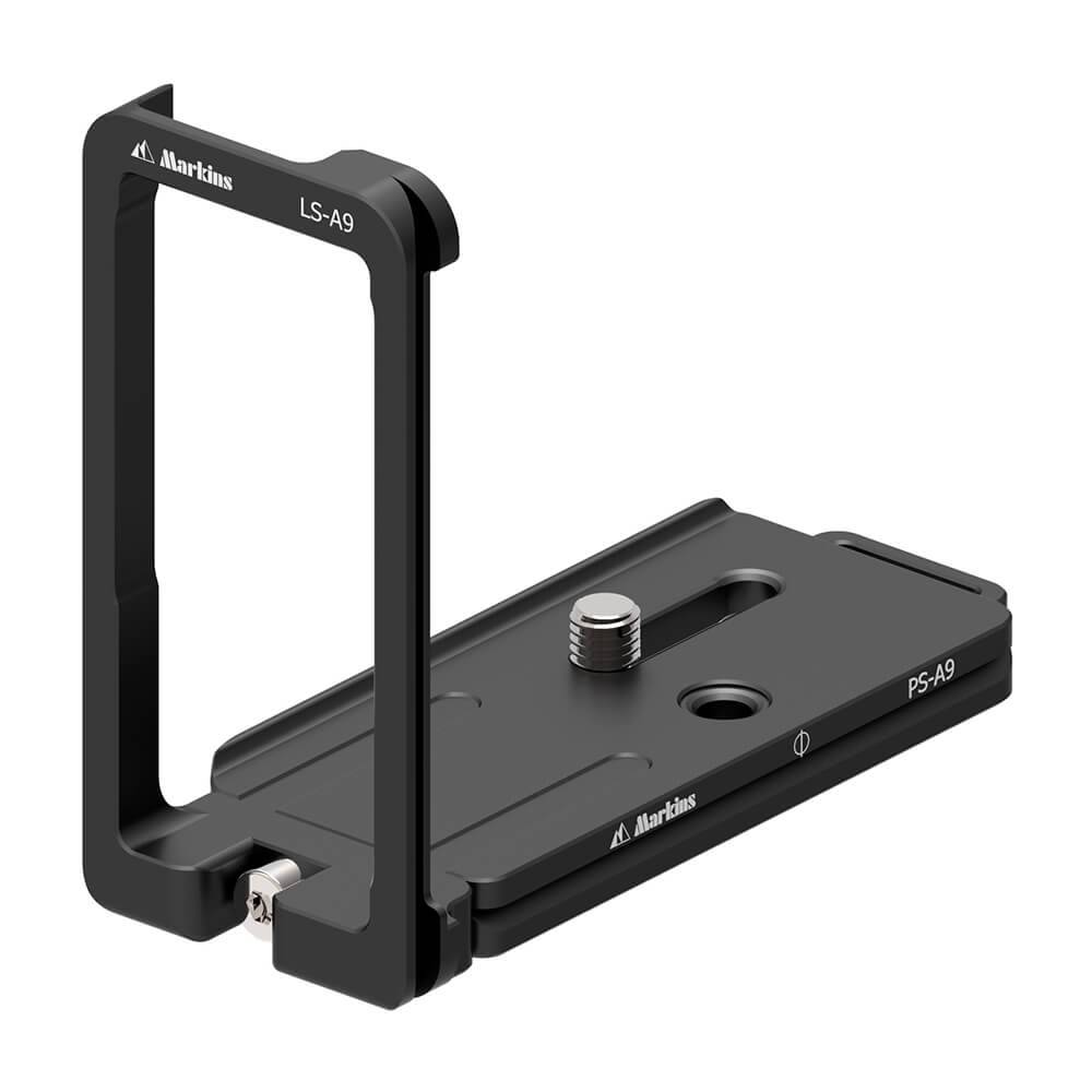 Placa de cámara de liberación rápida Markins para su cámara Sony A9 y A7R III (sin battery grip). Convertible en L-Braket con la pieza opional PS-A9-Adaptador L-lateral