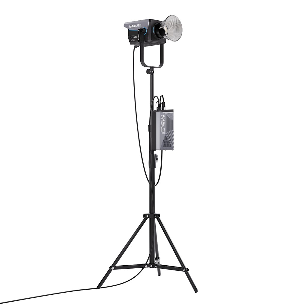 De esta manera puedes utiizar tu Foco de la serie Nanlite FC, tanto en interior conectado a la red, como en exterior de una forma fácil y muy portátil.