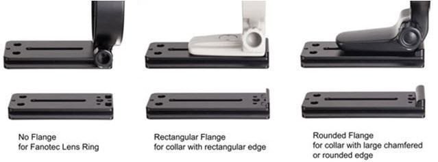 Arca Swiss Compatible Lens Plate The lens plate is Arca Swiss compatible and has 1/4" socket at the base. It features a removable anti-twisting flange. Different flange can be made to fit different shapes of lens feet. Rectangular flange fits collar with rectangular edge. Rounded flange fits collar with large chamfered or rounded edge. There are 3 lengths of lens plate is to choose from: 70mm / 85mm / 100mm / 120mm. It is also compatible with Fanotec lens ring and the LF-1 Replacement Lens Foot for Pentax DA*60-250mm, DA*300mm and Adapter Q to K Features: Arca Swiss compatible Compatible with Fanotec lens rings. 1/4" socket at the base Removable and changeable anti-twisting flange to fit different shapes of lens feet