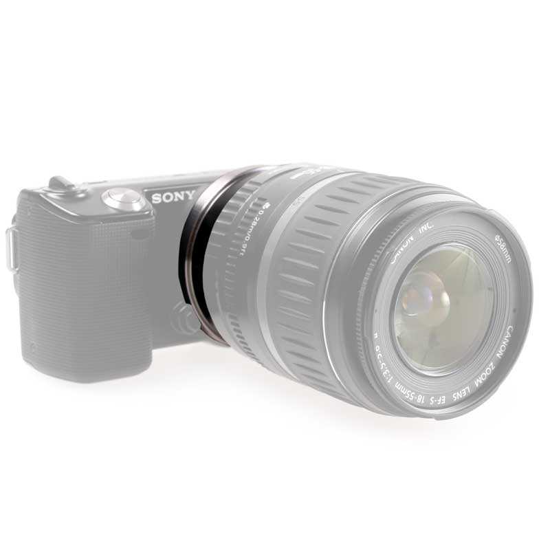 Este adaptador puede utilizarse para montar objetivos Canon EOS en cámaras Sony con montura tipo E (Sony E-Mount). El adaptador encaja en todas las cámaras con montura tipo E. Además, puede funcionar tanto con objetivos EF como EF-S.