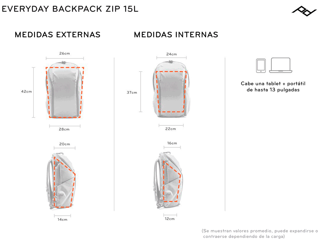 Esta mochila con cremallera Everyday Backpack Zip de 15L y color negro de Peak Design es versátil y liviana para fotógrafos o creadores multimedia, y puede servir para llevar cualquier artículo personal. El acceso completo al compartimento principal está habilitado por una abertura con cremallera y cubierta. La cremallera recorre ambos lados de la mochila. Cuando se abre parcialmente, la cremallera en ángulo permite acceder fácilmente al compartimento principal, ya sea a través de la parte superior o a lo largo de cada lado de la cremallera. Dos divisores ajustables permiten apilar artículos dentro del compartimento principal. Los divisores cuentan con superficies plegables que se pueden configurar para amortiguar y sostener los artículos contra los lados de la bolsa, lo que da la posibilidad de escoger a qué artículos se puede acceder más rápidamente por el lateral.