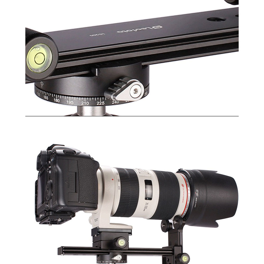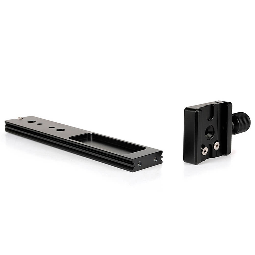 Cuando se toma una fotografía, especialmente con distancias focales largas, la cámara y la lente deben estar absolutamente estáticas. Cuando se dispara, el espejo causa vibraciones que causan sacudidas y desenfoques de imágen. Es posible reducir este fenómeno usando un soporte para lentes que va montado en la zapata, la cámara en el sistema de liberación rápida y el objetivo está en la parte frontal de las dos ruedas. Características principales:
