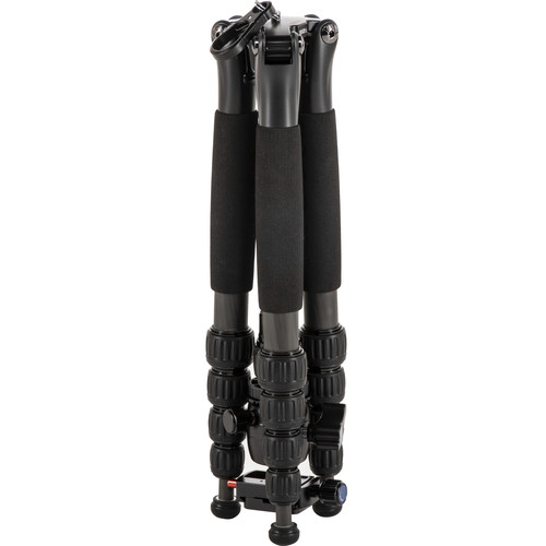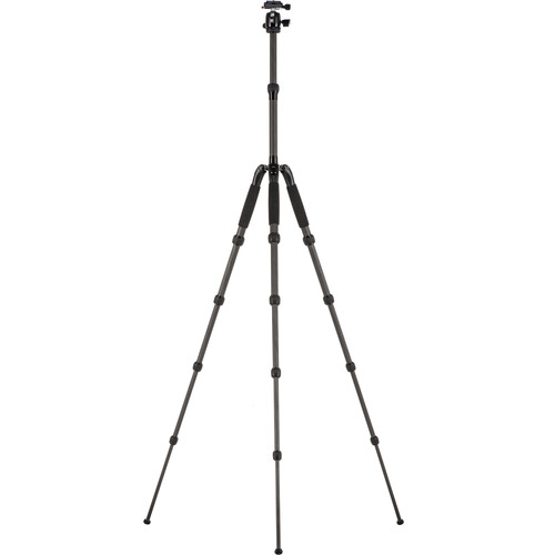 El trípode de viaje T-025SK T-0S con rótula B-00 es un trípode con patas de carbono de 5 secciones que se extienden, junto con la columna central de 2 secciones, al desbloquear cada sección de bloqueo de giro.