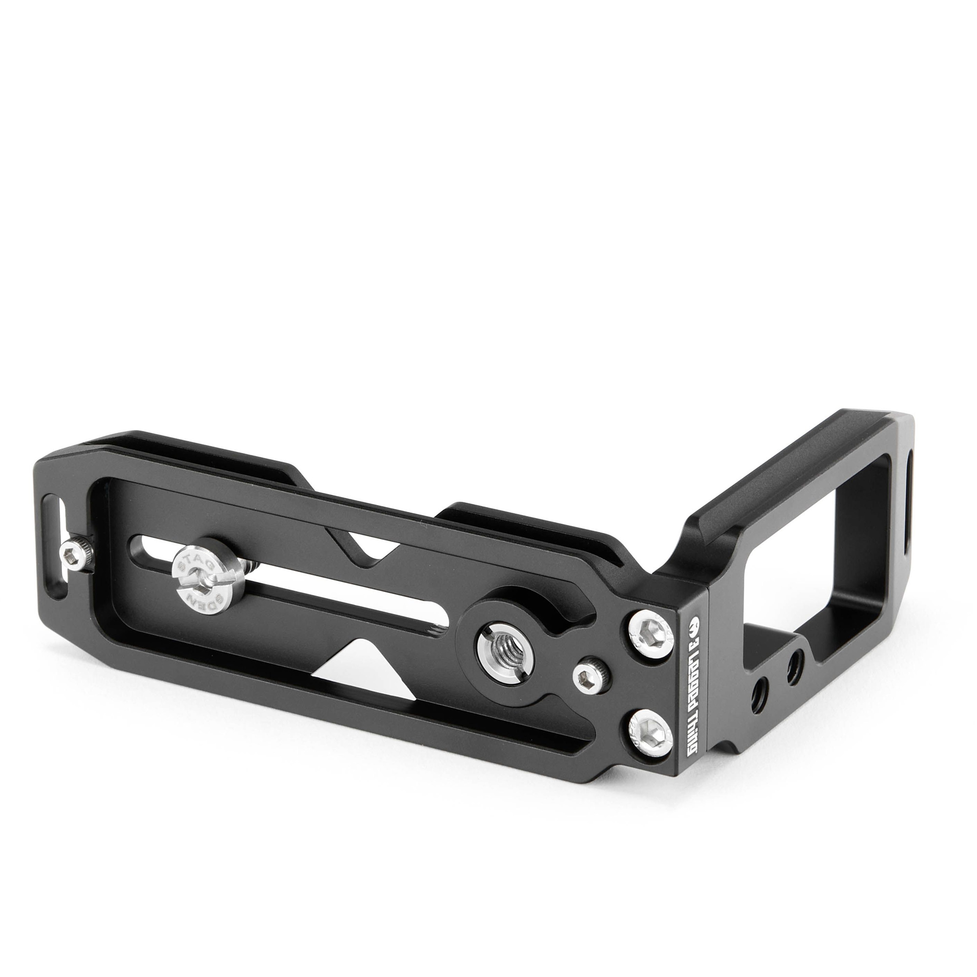 Ahora también disponible en negro: La segunda versión del soporte en L QR11-LC facilita aún más y hace más rápido el cambio de formato vertical a horizontal, gracias al riel vertical giratorio, nuevas ranuras y nuevas conexiones.