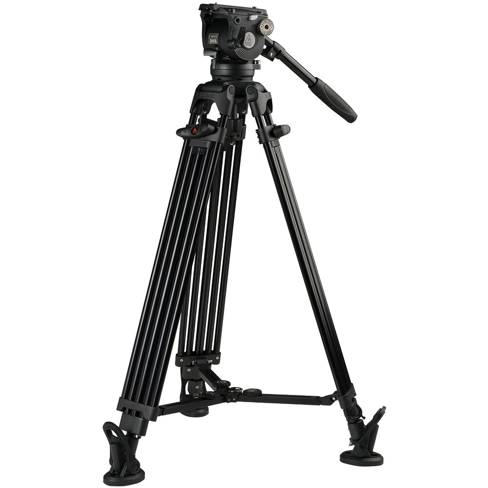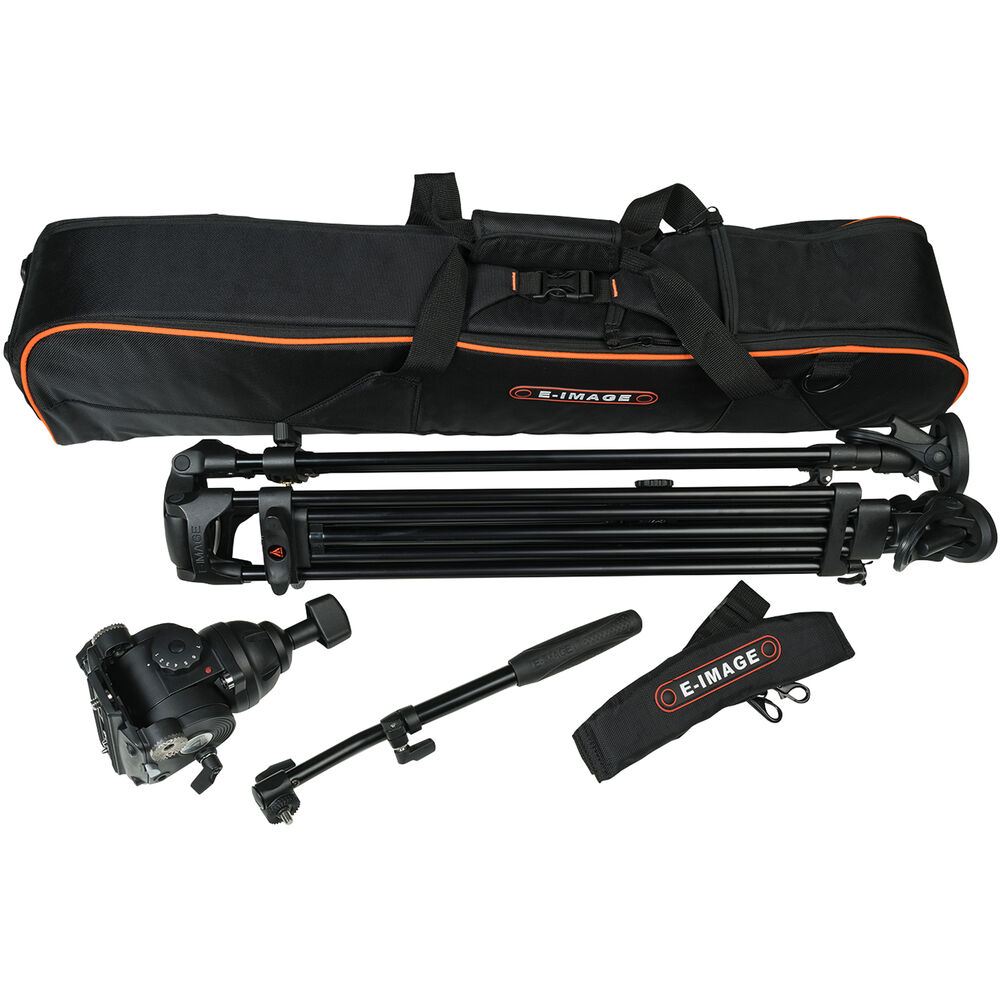 El sistema de trípode de aluminio E-Image EG08A2 es compatible con cámaras y accesorios que pesan hasta 17.6 libras. Incluye el cabezal de fluido GH08 con barra de barra GB2, patas de trípode de aluminio GA752 de dos etapas y spreader de nivel medio GS01. Las patas del trípode cuentan con tres secciones con bloqueo de patas monobloque. El sistema ofrece un ajuste de altura de 2.5 a 5.6 pies, y se colapsa hasta 33.3 ".