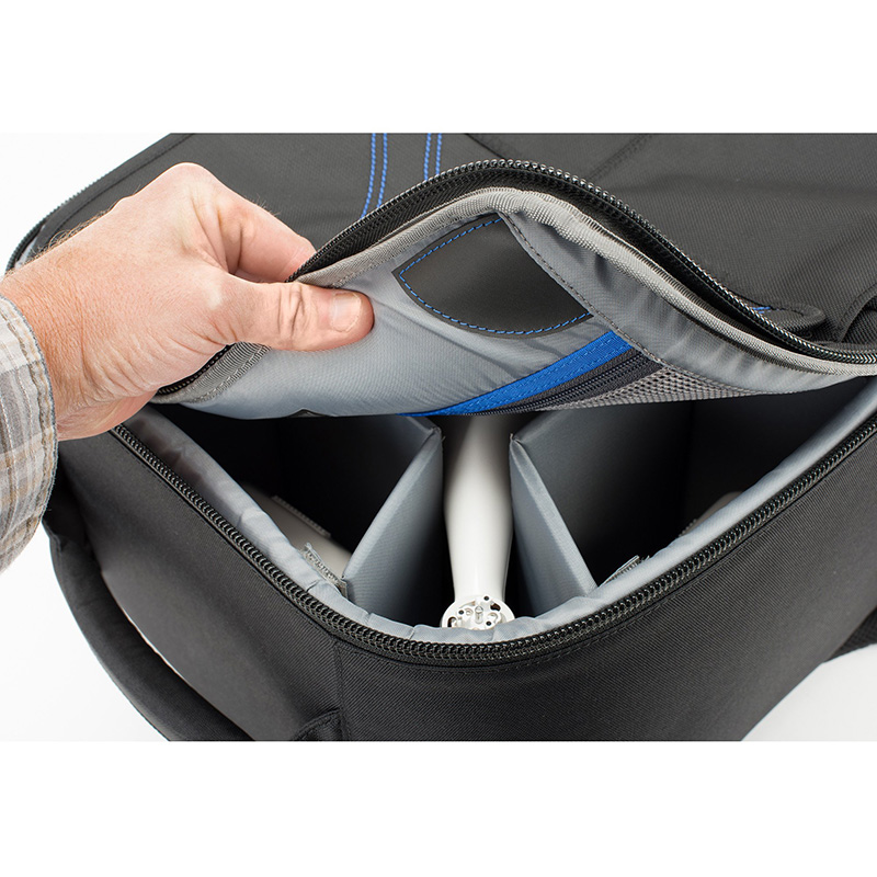 - El juego de divisores personalizado específicamente diseñado para la serie DJI Phantom permite reconfigurar el bolso dependiendo de qué equipo se lleve