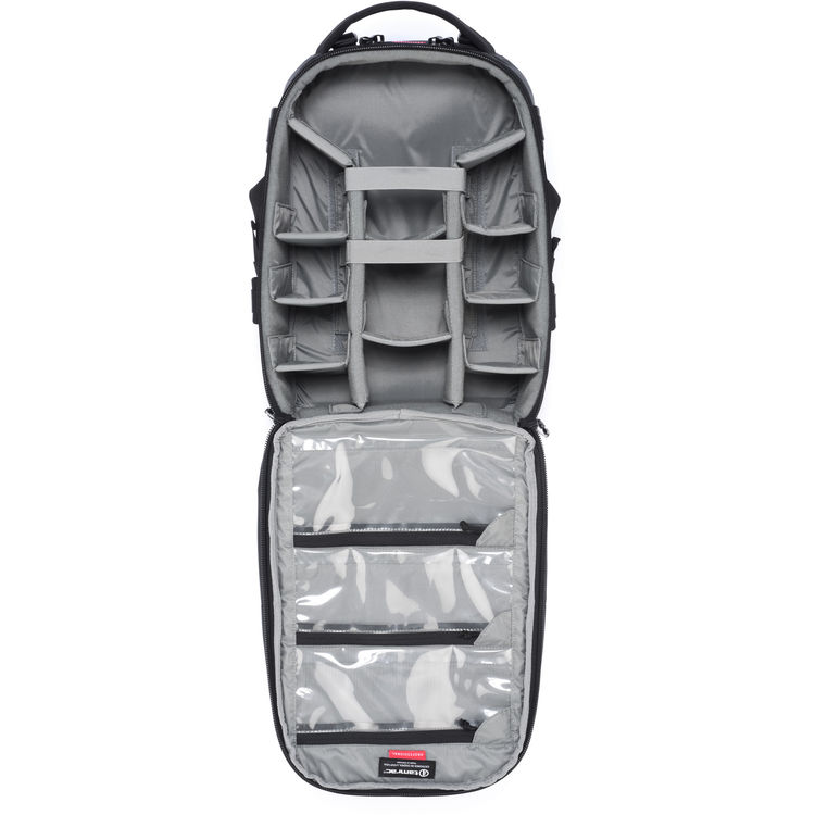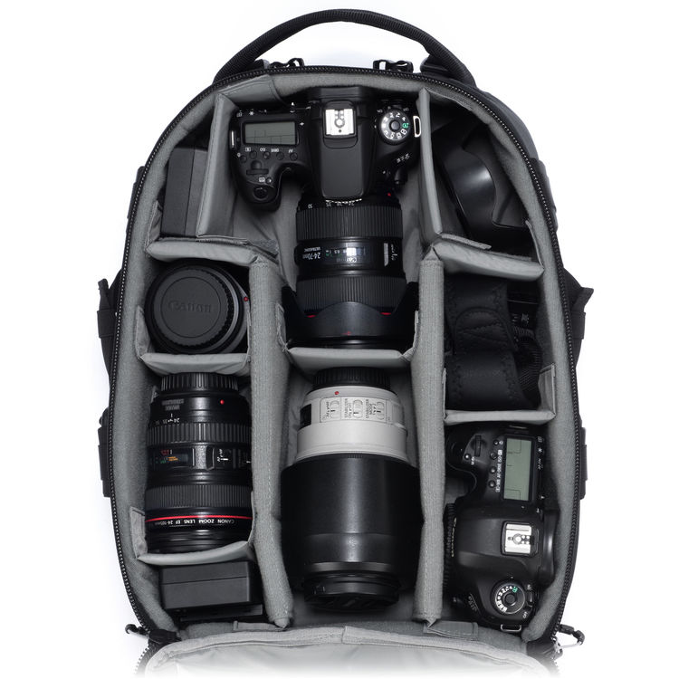 La mochila Anvil Slim 11 de Tamrac tiene un compartimento principal con divisores de sujeción acolchados para almacenar y organizar sus DSLR compactas o cámaras sin espejo con lentes, objetivos adicionales y accesorios. En la parte delantera de la mochila hay tres bolsillos interiores, con cremallera y transparentes para identificar fácilmente los accesorios. El compartimento frontal con cremallera, exterior y acolchado, tiene una funda interior para guardar en total seguridad una computadora portátil de hasta 15 "u otro dispositivo. Los bolsillos exteriores son útiles para guardar artículos como gafas de sol, teléfonos móviles, mapas, billetera y otras necesidades. Las correas de compresión permiten mantener el equipo libre de movimientos excesivos. Dos correas desmontables, ajustables y de liberación rápida en la parte frontal del se utilizan para asegurar las patas de un trípode profesional, junto con un bolsillo inferior para accesorios, que se utiliza para sostener los pies del trípode. Para mayor comodidad y estabilidad, el arnés presenta correas de hombro acolchadas y ajustables con un conector. Para viajes más largos está dotada de un cinturón de cadera extraíble. Tanto el cinturón de la cadera como el costado de la mochila tienen puntos de fijación del sistema M.O.L.L.E. Cubierta de lluvia ajustada incluida