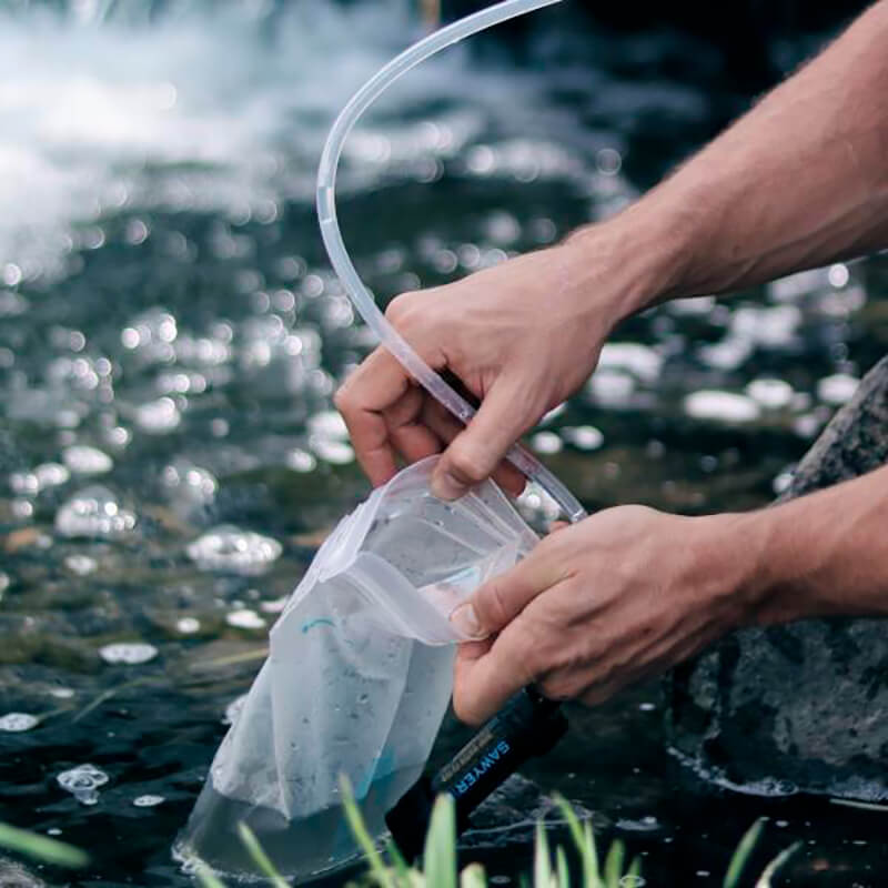 El sistema de filtración en línea Sawyer MINI Filter elimina hasta el 99.9% de las bacterias y protozoos por aproximadamente 100,000 gal.