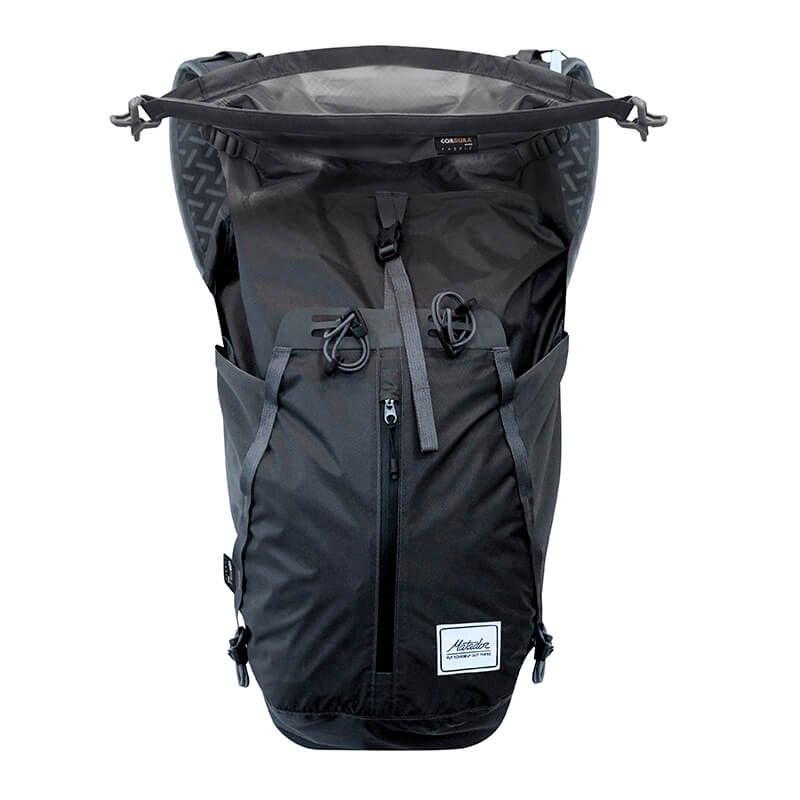 La mochila de Hydrolite, fabricada con tejido 30D Cordura resistente a los pinchazos e impermeable, cuenta con cremalleras resistentes al agua y costuras selladas internamente, junto con una tapa enrollable Hypalon para su compartimiento principal.