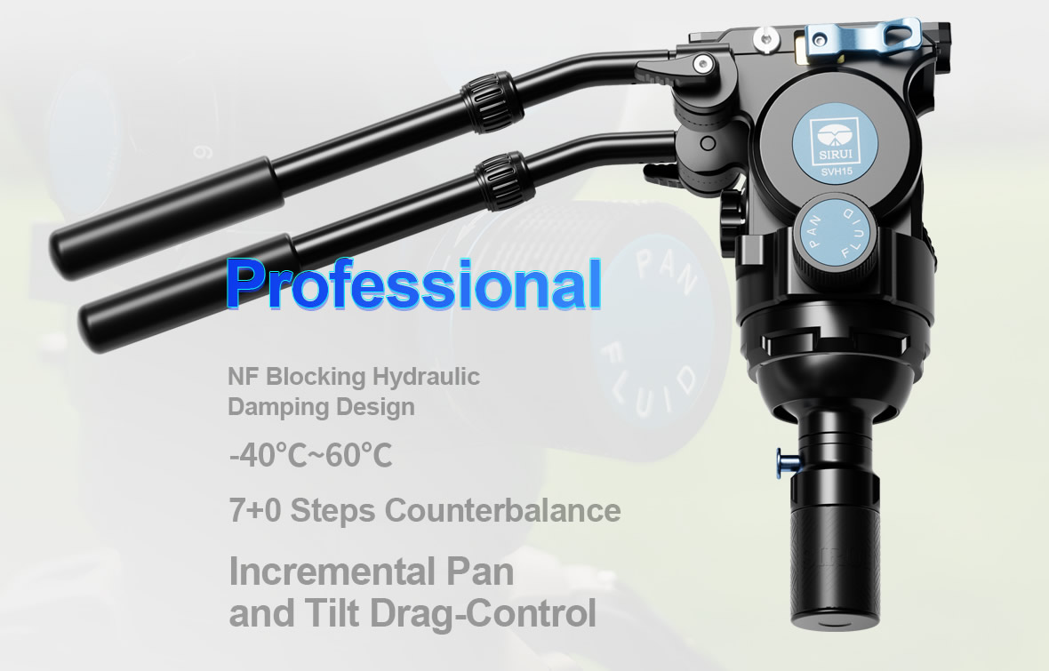 El cabezal de vídeo SVH15 Drag-Control es el más profesional de SIRUI, construido con aleación de aluminio. Cuenta con un amortiguador hidráulico completamente bloqueante NF diseñado para garantizar un funcionamiento suave en un rango de temperatura de -40°C a 60°C. Ofrece 7 niveles de contrapeso y un control incremental de arrastre de paneo e inclinación para equilibrar cámaras de diferentes tamaños y pesos, lo que permite una operación ideal y cómoda.