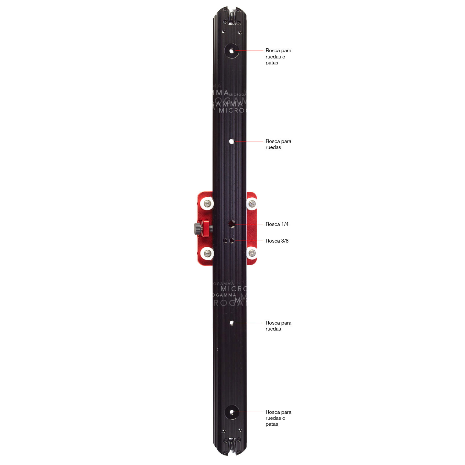 Factores de los Slider de Kamerar: - Material: Aluminio mecanizado, anodizado de color negro - Soporta 4,5 kg (10 libras). Según el peso se recomienda el uso de dos trípodes, los modelos ideales son los Classic de Benro - Peso del SLD-230: 935 gr + 185 gr de las patas = 1120 gr - Pies desmontables con puntas de goma - Cabezal de color rojo con nivel de burbuja - Carril: ancho parte inferior 40 mm, ancho parte superior 47 mm, altura 15,5 mm - Sistema de deslizamiento por disco de fricción silencioso - 4 puntos de fricción - Pies regulables |