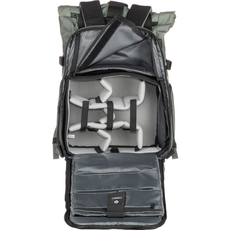 Para mayor comodidad, incluye tirantes acolchados y ergonómicos, correa de pecho para mejorar la estabilidad y un panel trasero con mejor ventilación. En el interior dispone de compartimentos acolchados para portátil y tablet, además de bolsillos con cremallera para mantener organizados los accesorios pequeños. Es compatible con un Camera Cube opcional, que se fija de forma segura en el interior.